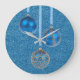 Relógio Grande Feliz Natal Blue Glitter Baubles Elegante