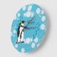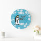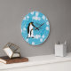 Relógio Grande feliz natal, natal, pinguim, flores, azul,