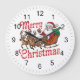 Relógio Grande Feliz Natal Papais noeis Voadores Sleigh Reindeer