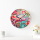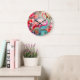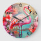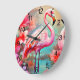 Relógio Grande Flamingo rosa tropical com flores- 87361