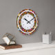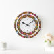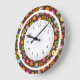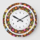 Esta design de flores de cor brilhante num fundo castanho de chocolate com um círculo exterior branco e uma face de relógio iluminará qualquer espaço.