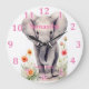 Relógio Grande Flor de Primavera de Aquarela de Elefante para Beb