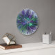 Relógio Grande Flor Verde Roxo Moderna Abstrato de Arte Fractal