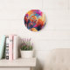 Floral Abstrato Art Laranja Vermelho Azul Flores Arredondadas Relógio de Parede