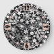 Relógio Grande floral branco preto