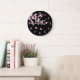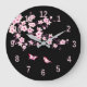 Relógio Grande Floral Cherry Blossomo Rosa Preto