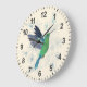 Este relógio apresenta um belo beija-flor verde em um fundo bege floral.