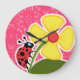 Relógio Grande Floral Rosa; Ladybug
