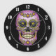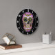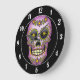 Relógio Grande Floral roxo do crânio do açúcar