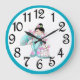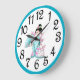 Um Belo Relógio De Parede Numerado No Azul Pastel, Com Flor De Cereja Rosa Com Um Centro De Dançarinas De Ventiladores Asiáticos.