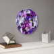 Relógio Grande Flores Brancas Florais Púrpuras Azuis