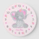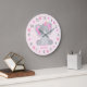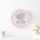 Relógio Grande Flores de Elefante Cinza Rosa Nome Menina Berçário
