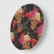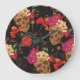 Relógio Grande Flores Do Crânio: Fundo Escuro Sem Olhos.