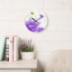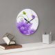 Relógio Grande Flores Roxas E Folhas Verdes