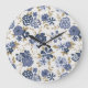 Relógio Grande Flores Simples Azuis Ilustradas Vinhas Botânicas