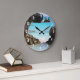 Um relógio com uma fotografia cênica com a costa tropical das Bermudas. As rochas grandes contrastam com o mar turquesa brilhante.