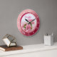 Um simples relógio em tons vermelhos rubis, com números romanos. O quadro que funciona como parte do relógio também é um quadro para sua fotografia favorita de casamento. Substitua a imagem de exemplo por sua. Adicione seus nomes e outros textos para fazer um lindo casamento comemorativo ou presente de aniversário personalizado. (NOTA IMPORTANTE: Todos os elementos do design são digitais e impressos numa superfície lisa.)