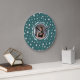 Relógio Grande Foto Personalizada com Círculo de Pérolas em Azul