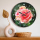 Uma foto aproximada de uma rosa rosa ligeiramente iluminada contra a folhagem verde-escura faz você querer "parar e cheirar as flores". Relaxe e inale a beleza desta fotografia sempre que você verificar o tempo neste incrível relógio de parede. Sua escolha de um relógio quadrado ou redondo. Faz um presente excelente para o lar! Você pode personalizar facilmente este relógio de parede. Por favor, me mande mensagens com quaisquer perguntas ou solicitações.