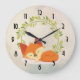 Relógio Grande Fox alaranjado do sono bonito com a grinalda verde
