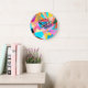 Relógio Grande Fundo de Aquarela Geométrica abstrato Colorida
