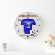 Um único design esportivo com uma camisa de futebol azul e branca com uma bola de futebol pendurada num vestiário que é totalmente personalizável com o seu próprio nome e número. Um convite de aniversário personalizado ideal para qualquer jogador de futebol ou fã de futebol. Disponível em várias cores do time de futebol. Podemos fazer este design em qualquer combinação de cor de camisa da equipe, apenas entre em contato conosco através da loja de presentes bonanza antes de comprar com o seu pedido. série de promocionais: pgb1504