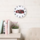 Keep track of time with this unique industrial concept art wall clock. Featuring a sleek cyberpunk machine and futuristic red transport design, this timepiece adds a modern automotive aesthetic to any office, workshop, or gaming room. The bold sci-fi command vehicle graphic serves as a functional piece of art for fans of retro futurism and heavy expedition trucks. Clear and easy to read, this galactic rover clock is the perfect home decor item for anyone who appreciates high-tech digital graphic illustrations.
