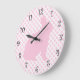 Relógios de parede feminina cor-de-rosa com coelho rosa fofo e fundo de bolinhas na face do relógio. Design decorativa de decoração de parede para meninas, crianças, um quarto de meninas, ou até um bebê recém-nascido. As cores incluem rosa, branco e preto.