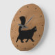 Relógio Grande Gato Negra Andando com Madeira Faux Longa