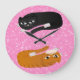 ilustração do gengibre e de gatos pretos sobre um fundo cor-de-rosa do brilho