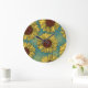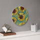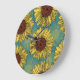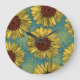 Relógio Grande Girassóis Desenhados À Mão Azul