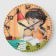 Relógio Grande Girl Studying at Desk Doing Homework
