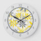 Aqui está um bonito relógio padrão gráfico que parece excelente em uma cozinha, sala de sol, ou qualquer lugar onde seja necessário um salto de cor. Ele apresenta um padrão de flores amarelas e cinzas como o centro. Ao redor do perímetro há uma estrutura de cinza luminosa correspondente com números de cinzas mais escuros. Certifique-se de ver os produtos correspondentes em nossa loja. *Crédito de Design gráfico para os Designs Malachi no Etsy.