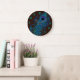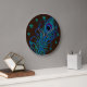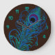 Este relógio tem um gráfico de uma pena de pavão estilizada.