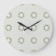 Um design sereno que mostra flores verdes, suaves e em camadas, no cheio. Estes delicados florais são belamente colocados contra um nítido fundo de padrões geométricos em cinzas brancas e suaves, criando uma composição harmoniosa e pacífica.