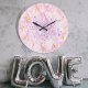 Impressão de mármore rosa, decorado com poeira brilhante púrpura. Números de ouro.