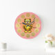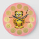 Um belo relógio de parede para o quarto ou berçário de uma menina com uma bela imagem rosa de tigre de gato grande com grandes números de ouro. Você pode excluir os círculos e os números, se preferir.