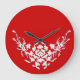 RELÓGIO GRANDE GRIFFOS BRANCOS E FLORES EM VERMELHO