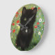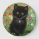 Relógio com um gatinho Gustav Klimt! Este gatinho preto veste um colar prateado e se senta num campo de flores vermelhas, azuis, brancas e amarelas. Um presente maravilhoso para amantes de gatos e entusiastas de arte austríacos!