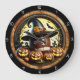 Este relógio único do Halloween mostra um futebol vestindo um chapéu de bruxa, cercado por lanternas brilhantes e pedras magras debaixo de uma lua de cheio com morcegos. A vibrante design de laranja e preto faz dela uma mistura perfeita de fãs de esportes e decor de entusiastas de Halloween. Edite a cor dos números de relógios na ferramenta Design para as cores favoritas.