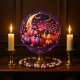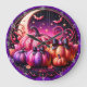 Esta única face do relógio apresenta uma cena de Halloween mimica e assustadora com abóboras em vários tons de roxo, rosa e laranja. As abóboras são enfeitadas com intrincados padrões giratórios e arcos roxos escuros, e elas estão cercadas por morcegos, estrelas penduradas e uma lua crescente grande. O design inteiro está contido dentro de uma borda roxa escura e ornamentado com um padrão antigo.