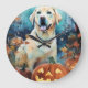 Relógio Grande Halloween Labrador Com Pumpkins Assustado