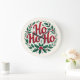 Relógio Grande Ho Ho Ho Christmas Wreath Typography Design