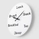 Hora de comer. Relógio mostrando o horário das refeições em vez de horas.