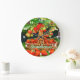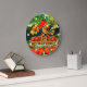 Morangos deliciosos, crescendo e prontos para colher, também uma cesta de fruta pronta. Um relógio alegre para você se divertir, certo para a cozinha.