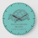 Coordenadas de latitude e longitude para as Ilhas Galápagos, um sítio histórico mundial da UNESCO localizado no Equador. O relógio de parede apresenta uma ilustração de tartaruga gigante sobre fundo aqua
