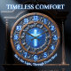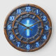 Celebrate your faith with the high-energy and modern aesthetic of this radiant religious wall clock. The central face features a glowing light-blue cross set against a deep navy backdrop with a vibrant sunburst effect. This central icon is framed by intricate faux-metal scrollwork and a secondary outer ring of ornate leaf-style accents. While the layered frames beautifully mimic the appearance of dark-stained timber and the numerals appear to be glowing neon, this is a lightweight and durable graphic timepiece rather than actual wood or electric lighting. The brilliant blue numeric markers provide exceptional contrast against the dark wood-grain background, ensuring the time is easily readable. This polished timepiece serves as a sophisticated focal point for a study, living room, or sanctuary, making it a perfect self-gift for those who appreciate bold, professional spiritual art.