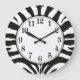 10,75" de relógio de parede em acrílico redondo com uma imagem de uma impressão em zebra branca e preta. Cara de relógio fácil de ler em branco com uma borda preta. Veja toda a coleção de clock Safari no DECOR| Seção Relógios.