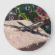 Relógio de lagarto bonito! Foto de um lagarto se divertindo ao sol em um tijolo de castor próximo a lindas flores em um jardim. Foto tirada na ensolarada Califórnia.