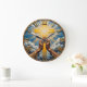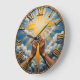 Bring a high-energy and deeply spiritual atmosphere to your home with this stunning artistic wall clock. The central face features a high-definition graphic of praying hands held before a luminous golden cross that radiates a brilliant sunburst through a serene, cloud-filled blue sky. While the artwork masterfully mimics the thick, textured appearance of an impasto oil painting and the ornate Roman numerals and outer rim look like raised metallic gold, this is a lightweight and durable graphic timepiece rather than actual gold, canvas, or sculpted plaster. The large, gold-style Roman numerals provide a professional and polished contrast against the vibrant blue and yellow background, ensuring the time is easy to read at a glance. This timepiece serves as an inspiring focal point for a prayer room, office, or living space, offering a meaningful self-gift for those who value modern spiritual art.